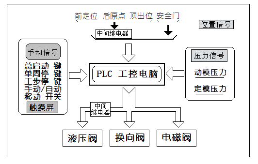1: PLC 的輸入由三部分組成,[手動(dòng)信號(hào)] + [位置信號(hào)] + [壓力信號(hào)] 。